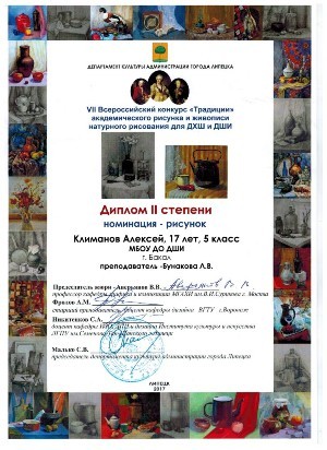 Климанов Алексей - дипломант II степени VII Всероссийского конкурса "Традиции академического рисунка и живописи"