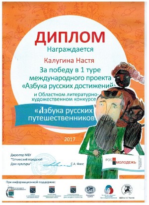 Калугина Настя - победа в 1 туре Международного проекта "Азбука русских достижений".