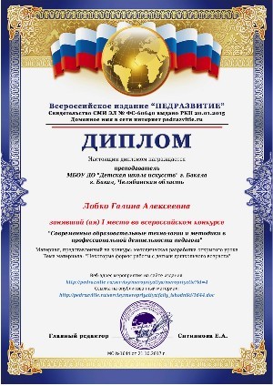 Лобко Галина Алексеевна – заняла 1 место во Всероссийском конкурсе «Современные образовательные технологии и методики в профессиональной деятельности педагога»