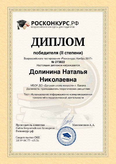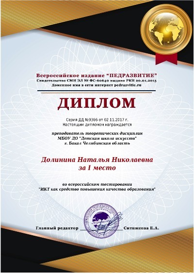 Преподаватели школы искусств г. Бакала участвуют в конкурсах, проходят тестирование и публикуют свои методические разработки.