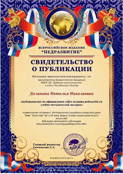 Публикация открытого урока «Балетный театр XX века. Новые течения хореографического искусства»