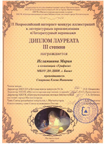 Исламшина Мария, лауреат 3 степени в номинации "Графика"